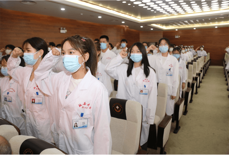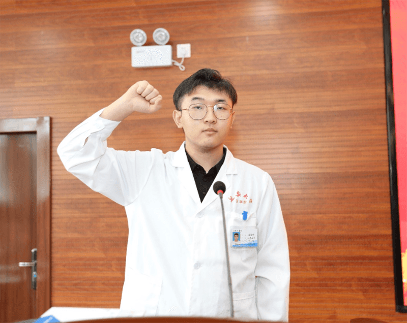 武樂樂同學(xué)代表全體學(xué)生進(jìn)行發(fā)言,她號召全體見習(xí)生,在新的環(huán)境下要繼續(xù)發(fā)揚(yáng)延安大學(xué)的艱苦奮斗精神,不斷加強(qiáng)自我修養(yǎng),提高品格,培養(yǎng)自主學(xué)習(xí)和獨(dú)立思考解決問題的能力,圓滿完成見習(xí)期間的各項(xiàng)任務(wù)。張登科同學(xué)帶領(lǐng)全體見習(xí)生誦讀《醫(yī)學(xué)生誓言》,莊嚴(yán)、堅毅的宣誓聲充分展示了他們的精神風(fēng)貌和踐行醫(yī)者使命的決心。