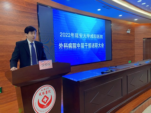 大會(huì)伊始,張群組長發(fā)表了重要講話,他首先對咸陽醫(yī)院參加此次述職的全體中層干部在過去兩年里的工作表現(xiàn)和業(yè)務(wù)能力表示充分肯定。對于醫(yī)院今后的發(fā)展,張群組長提出三點(diǎn)要求:一是全院上下要充分認(rèn)識(shí)當(dāng)前疫情防控工作的重要性和緊迫性,統(tǒng)一思想認(rèn)識(shí)、做好預(yù)檢分診,嚴(yán)格落實(shí)首診負(fù)責(zé)制,共同構(gòu)筑起醫(yī)院疫情防控的堅(jiān)固防線。二是希望全體中層干部以本次述職為契機(jī),各職能部門負(fù)責(zé)人要持續(xù)轉(zhuǎn)變作風(fēng)、提升效能、強(qiáng)化紀(jì)律;各臨床科室負(fù)責(zé)人要帶隊(duì)伍、提質(zhì)量、建學(xué)科,要善于總結(jié)發(fā)揚(yáng)良好經(jīng)驗(yàn),系統(tǒng)分析發(fā)展短板,共同構(gòu)建醫(yī)院高質(zhì)量發(fā)展新格局。三是醫(yī)院召開述職大會(huì)是開展年終考核工作的一項(xiàng)新舉措,要求從實(shí)際出發(fā)、實(shí)事求是,客觀公正的對各類人員作出評(píng)價(jià),全院職工要精誠團(tuán)結(jié)、形成合力,始終堅(jiān)守醫(yī)者的初心和使命,踔厲奮發(fā)、勇毅前行,以優(yōu)異的成績迎接來年的三甲復(fù)審!