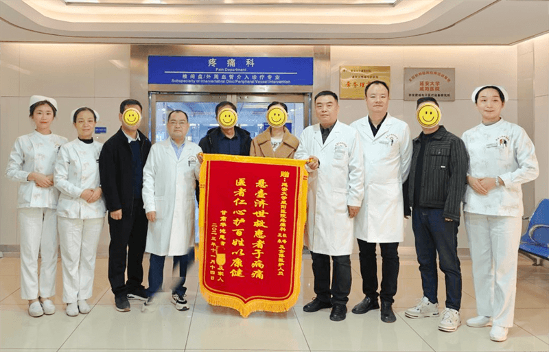 “懸壺濟(jì)世救患者于病痛,醫(yī)者仁心護(hù)百姓以康健”,近期我們收到了一面承載著患者及家屬滿懷感激之情而贈(zèng)送的錦旗?;颊叩募覍僬f:他愛人近幾年來由于反復(fù)的頭暈、頭木、惡心等問題,給他們的生活和工作帶來了很多的困擾。他和愛人輾轉(zhuǎn)了省內(nèi)外多家醫(yī)院,檢查做一大堆,藥吃一大筐可是癥狀仍然時(shí)輕時(shí)重,沒有得到徹底解決,他愛人也因?yàn)榇艘欢扰腔苍谝钟舻倪吘?。他的老父親多年來也因?yàn)檠鄯捶磸?fù)復(fù)的備受折磨,幾經(jīng)周折他得知,延安大學(xué)咸陽醫(yī)院疼痛科對(duì)此類疑難病例有著獨(dú)特的療法,他們遂抱著試一試的態(tài)度前來就診。