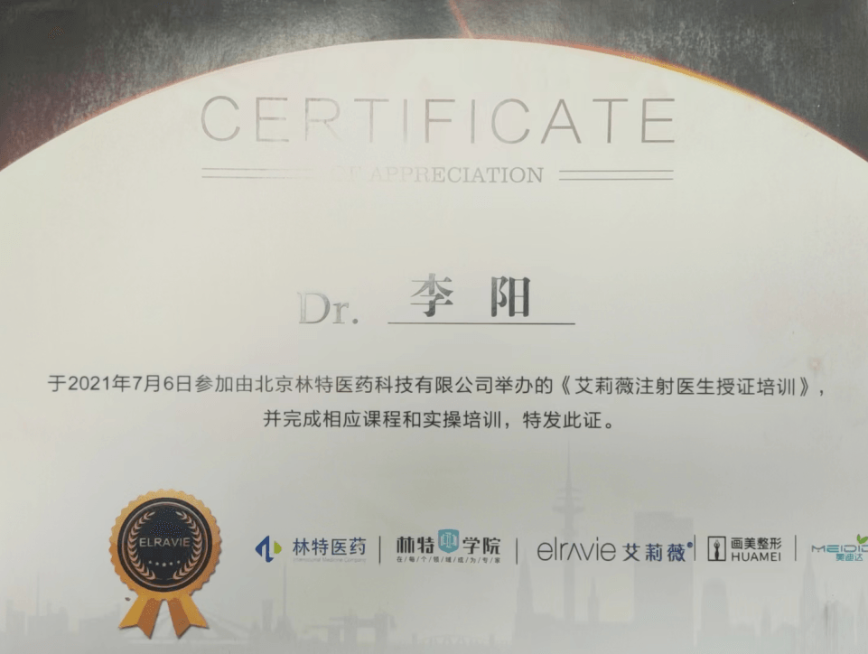 在日常的皮膚美容專業(yè)的學(xué)術(shù)會議和比賽中,也經(jīng)常見到李陽醫(yī)生的颯爽英姿,每次面臨難題,方知才疏學(xué)淺,通過互相學(xué)習(xí),可以進(jìn)一步豐富和夯實(shí)理論知識,緊扣專業(yè)學(xué)科知識前沿,不但能夠開拓視野,也會進(jìn)一步提高臨床治療水平?!搬t(yī)療美容”,本于醫(yī)療,但高于醫(yī)療,不但要求醫(yī)者有扎實(shí)的理論基礎(chǔ)和臨床能力,更要有更高的審美能力和良好的溝通技巧,每一次操作都必須精益求精,每一步都力求安全、精準(zhǔn),不辜負(fù)每一份期待,也不辜負(fù)每一次信任,讓醫(yī)美成為藝術(shù),這才是醫(yī)美醫(yī)生的工匠精神”她說道。也正是這種虛心求教、不斷進(jìn)取的精神,使她在醫(yī)美領(lǐng)域取得了卓越的成績。